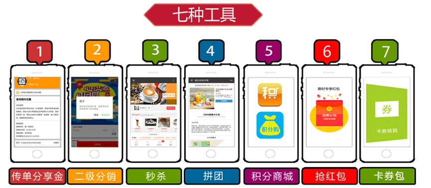 系统有多种社交营销工具。支持消费者通过微信转发分享,自动记录和根据规则分发佣金、分享金、抵用金等,利用消费者各自的社交渠道推广产品和服务。